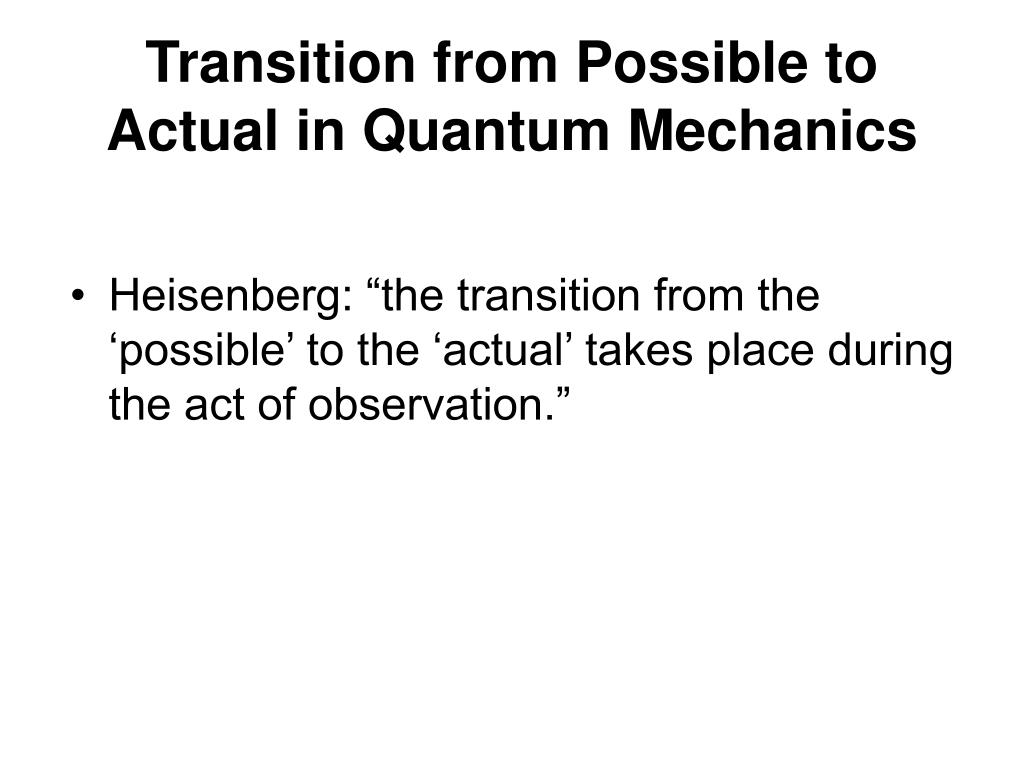 Transition from Possible to Actual in Quantum Mechanics • Heisenberg: “the transition from the ‘possible’ to the ‘actual’ takes place during the act of observation.”