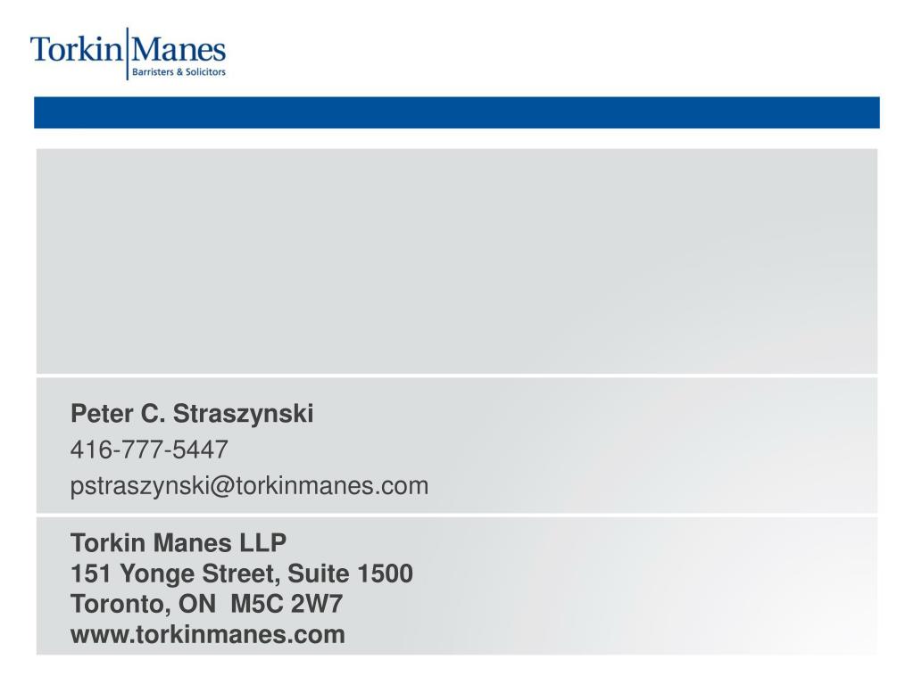 Peter C. Straszynski 416-777-5447 pstraszynski@torkinmanes.com