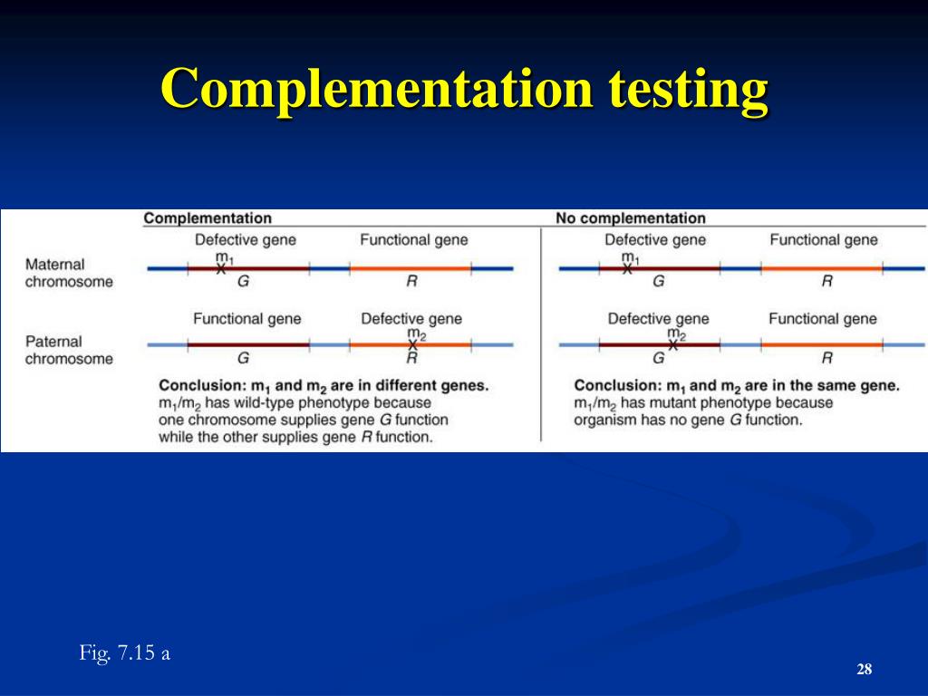 Fig. 7.15 b,c Five complementation groups (different genes) for eye color. Recombination mapping demonstrates distance between genes and alleles.