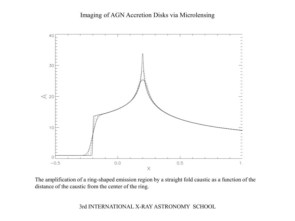 Imaging of AGN Accretion Disks via Microlensing The amplification of a ring-shaped emission region by a straight fold caustic as a function of the distance of the caustic from the center of the ring. 3rd INTERNATIONAL X-RAY ASTRONOMY SCHOOL