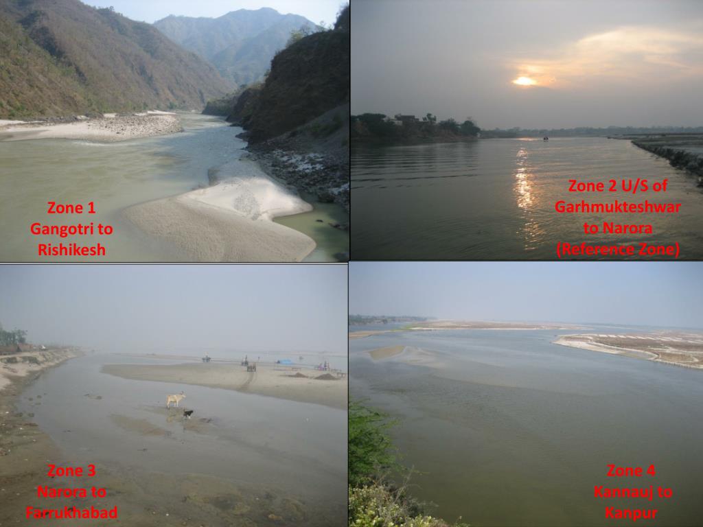 Zone 2 U/S of Garhmukteshwar to Narora (Reference Zone) Zone 1 Gangotri to Rishikesh Zone 3 Narora to Farrukhabad Zone 4 Kannauj to Kanpur