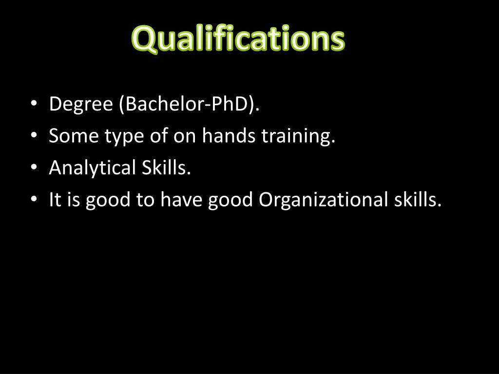Qualifications • Degree (Bachelor-PhD). • Some type of on hands training. • Analytical Skills. • It is good to have good Organizational skills.