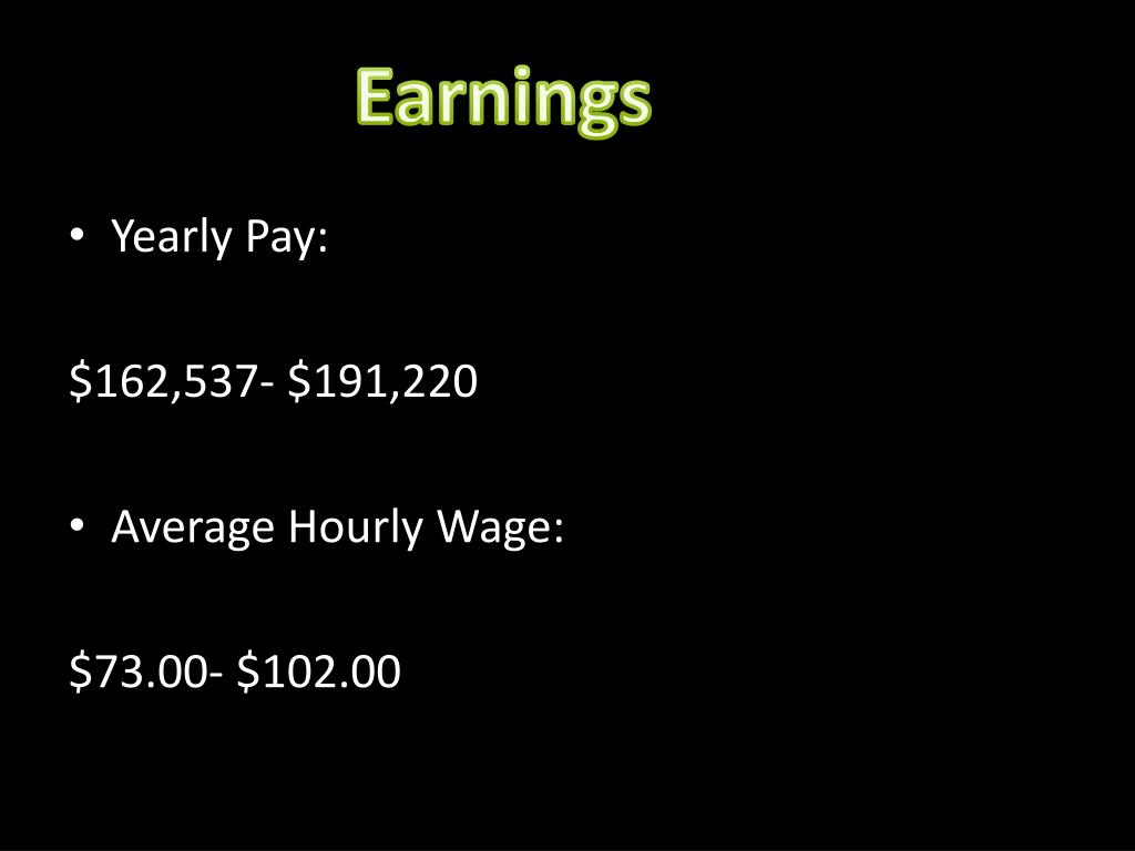 Earnings • Yearly Pay: $162,537- $191,220 • Average Hourly Wage: $73.00- $102.00