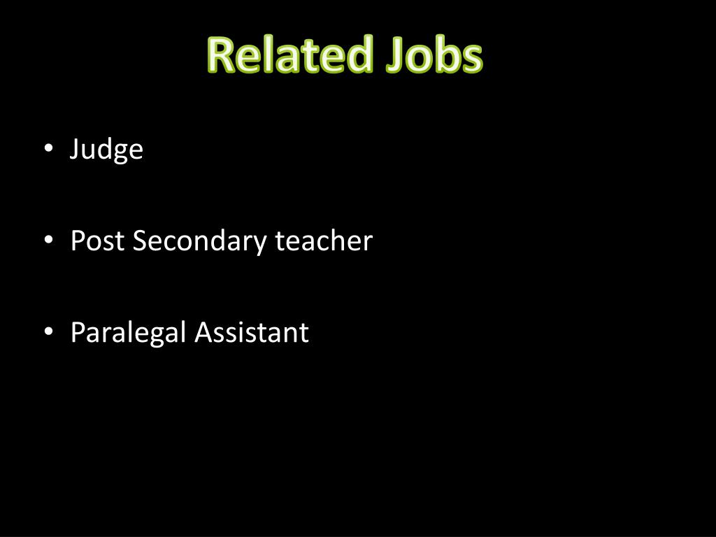 Related Jobs • Judge • Post Secondary teacher • Paralegal Assistant