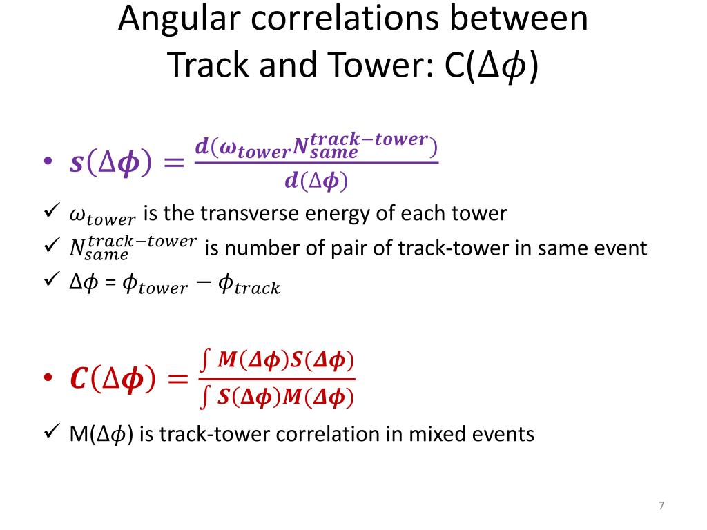 Angular correlations between Track and Tower: C() • is the transverse energy of each tower • is number of pair of track-tower in same event • = • M() is track-tower correlation in mixed events
