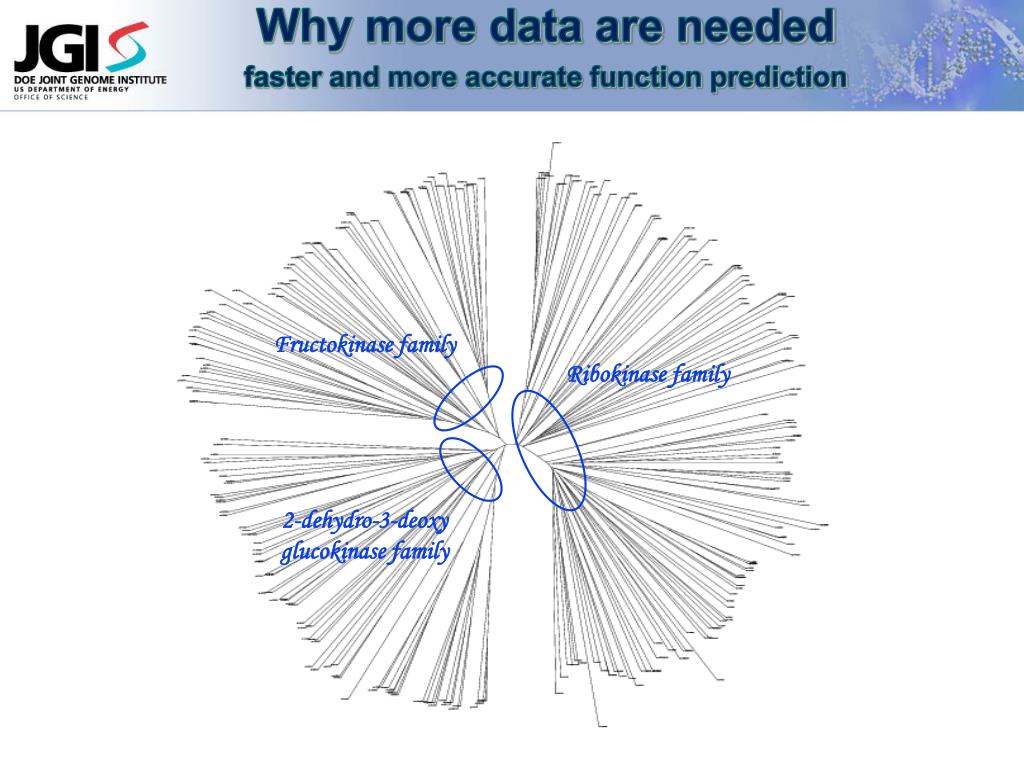 Why more data are neededfaster and more accurate function prediction Fructokinase family Ribokinase family 2-dehydro-3-deoxyglucokinase family