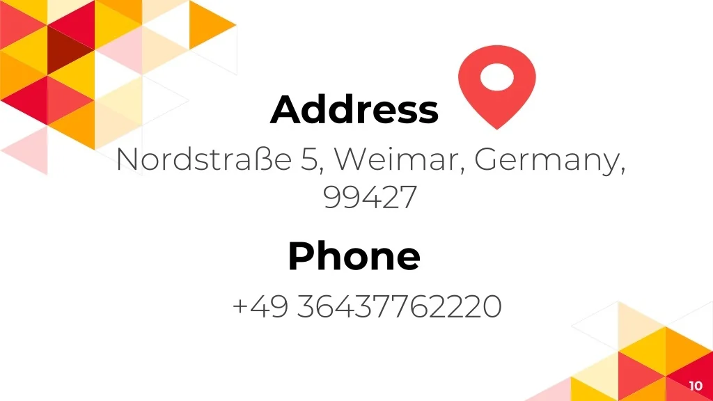 Address Nordstraße 5, Weimar, Germany, 99427 Phone +49 36437762220