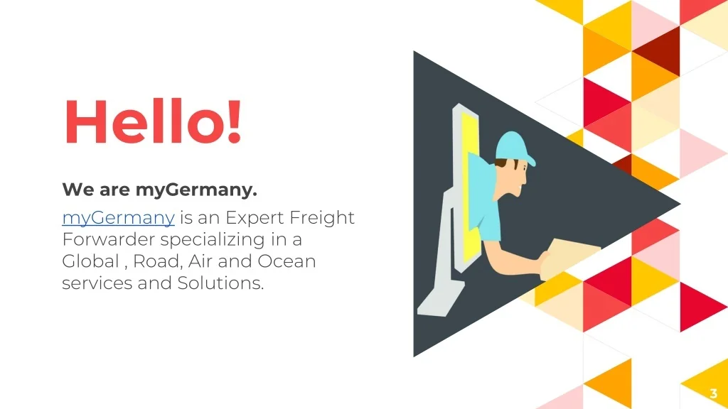 Hello! We are myGermany. myGermany is an Expert Freight Forwarder specializing in a Global , Road, Air and Ocean services and Solutions.