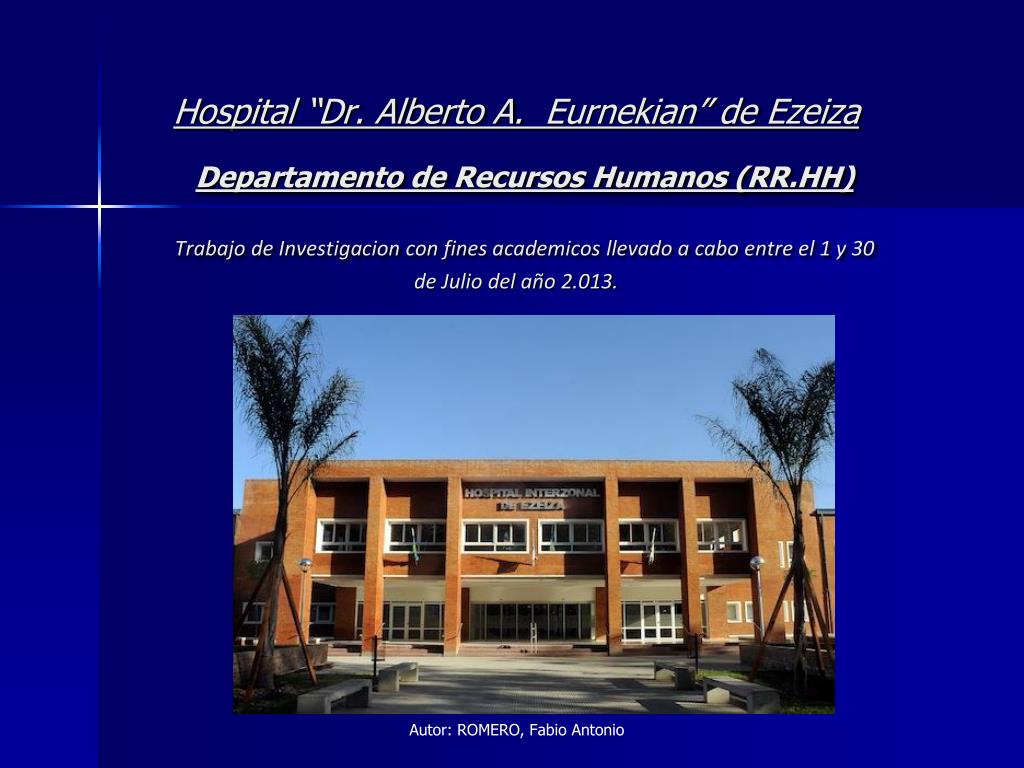 Hospital “Dr. Alberto A. Eurnekian” de EzeizaDepartamento de Recursos Humanos (RR.HH)Trabajo de Investigacion con fines academicos llevado a cabo entre el 1 y 30de Julio del año 2.013. Autor: ROMERO, Fabio Antonio