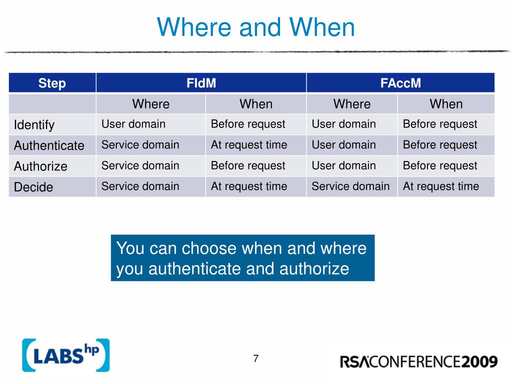 Asked at the time and place of the service Must distribute identities Single userid/password, SSO, true federation Must get identities in place ahead of time But still need to express access policy Indirection leads to complications Often leads to violations of Least Privilege FIdM: Who are you?