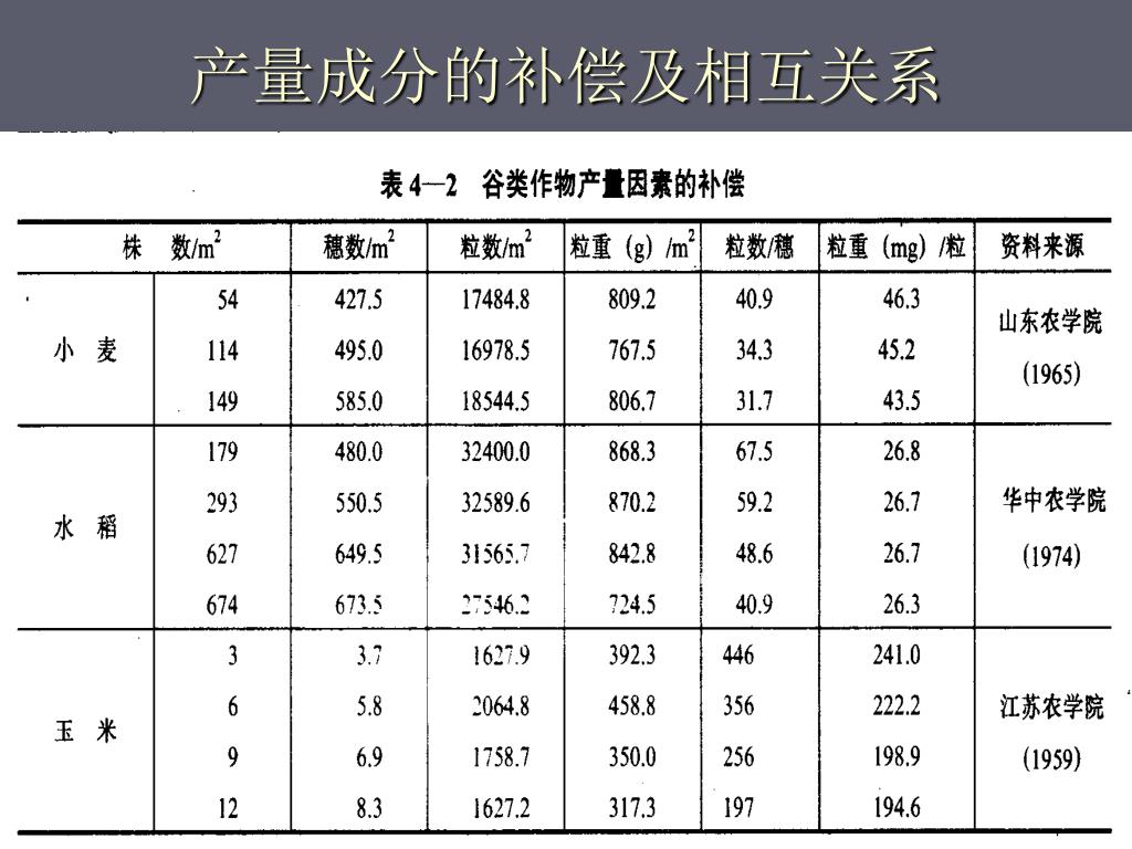产量构成因素 Engledow 产量=穗数×单穗粒数×单粒重量 松岛 产量=穗数×单穗颖花数×结实率×粒重