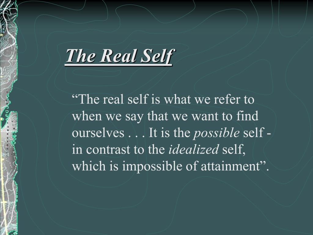 The Real Self “The real self is what we refer to when we say that we want to find ourselves . . . It is the possible self - in contrast to the idealized self, which is impossible of attainment”.
