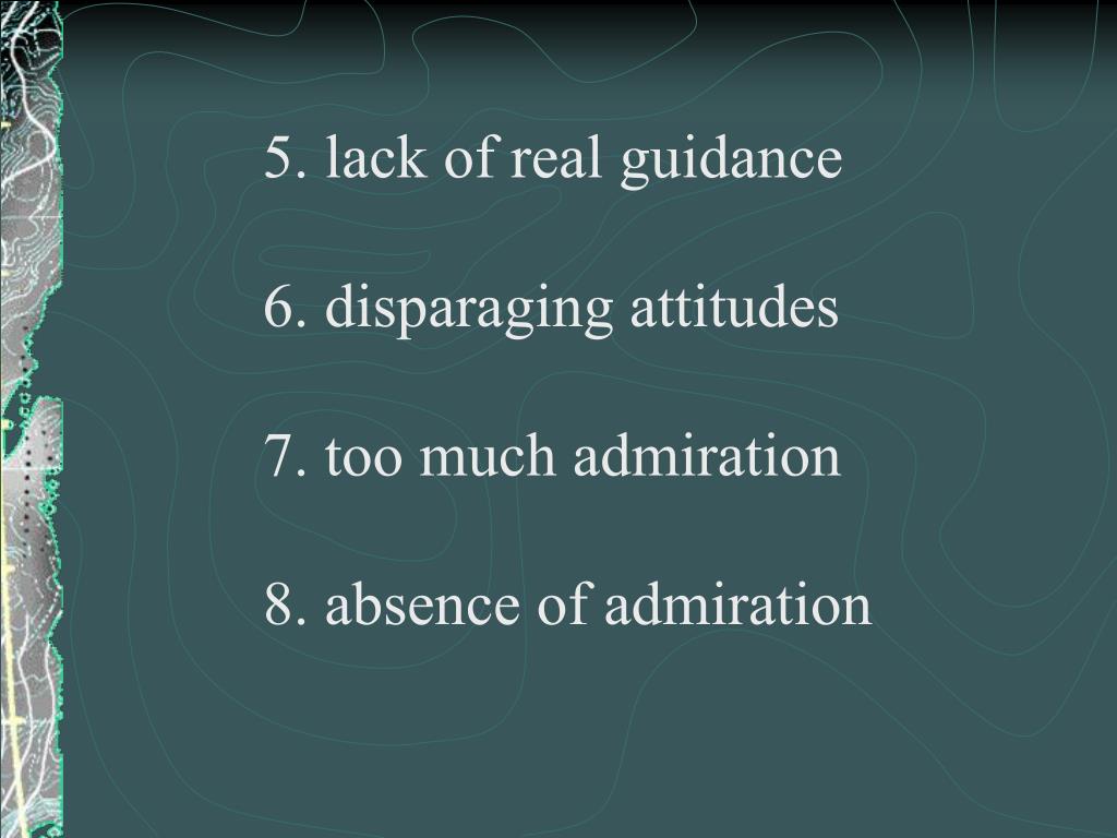 5. lack of real guidance 6. disparaging attitudes 7. too much admiration 8. absence of admiration