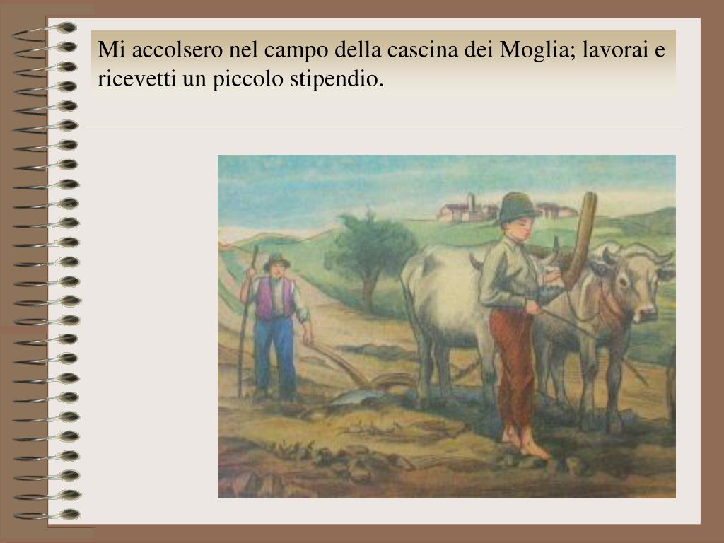 Mi accolsero nel campo della cascina dei Moglia; lavorai e ricevetti un piccolo stipendio.