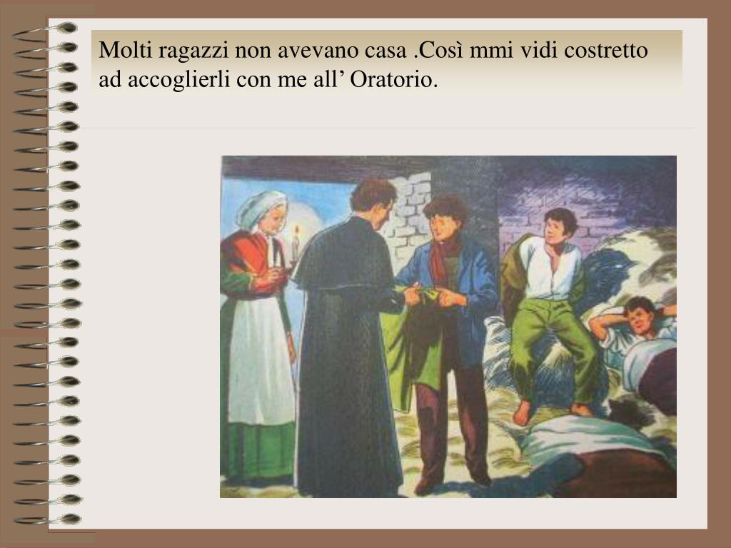 Molti ragazzi non avevano casa .Così mmi vidi costretto ad accoglierli con me all’ Oratorio.