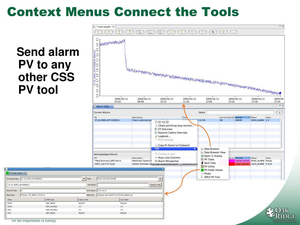 Context Menus Connect the Tools Send alarmPV to anyother CSSPV tool