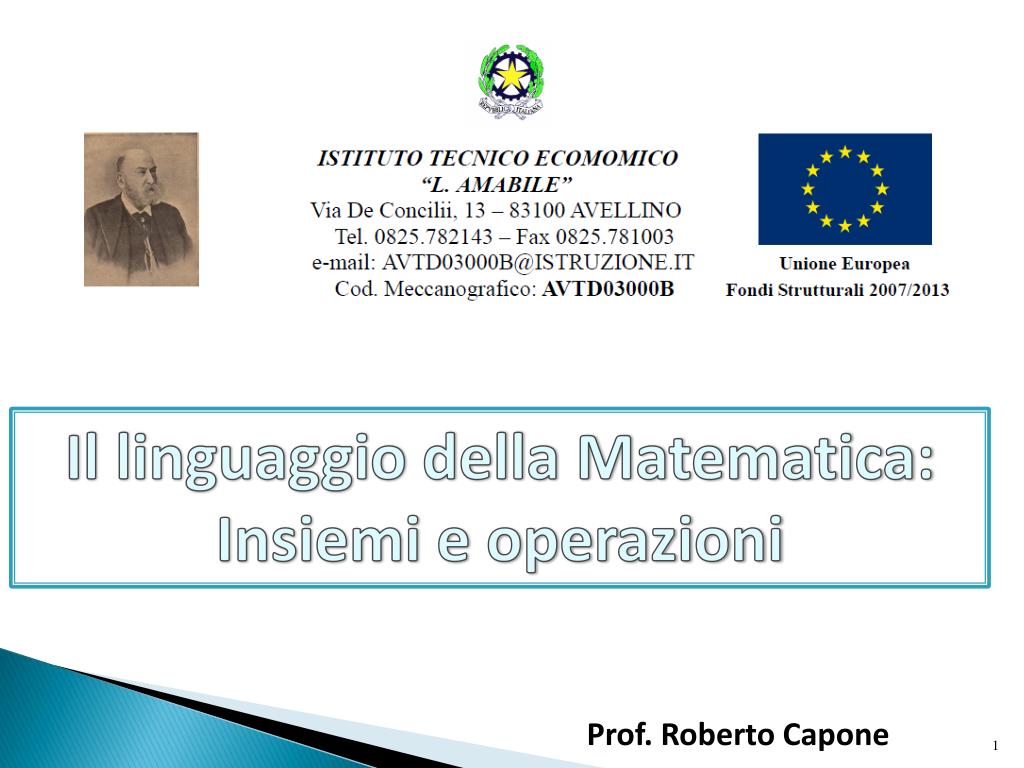 Il linguaggio della Matematica: Insiemi e operazioni Prof. Roberto Capone