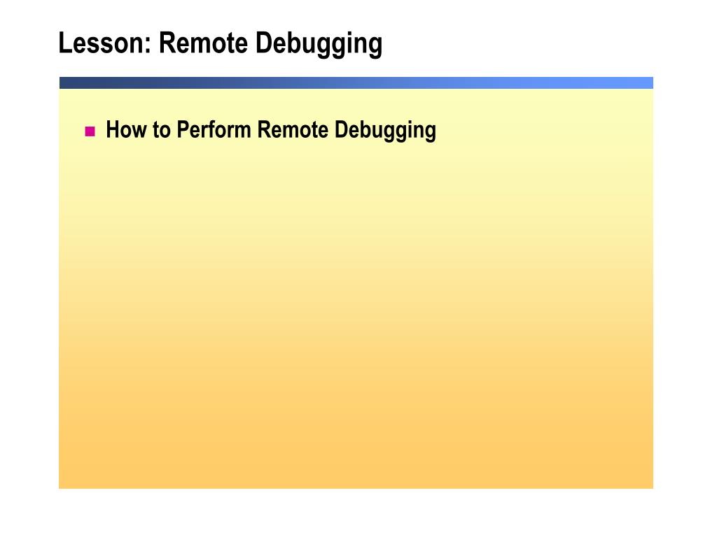 Lesson: Remote Debugging • How to Perform Remote Debugging