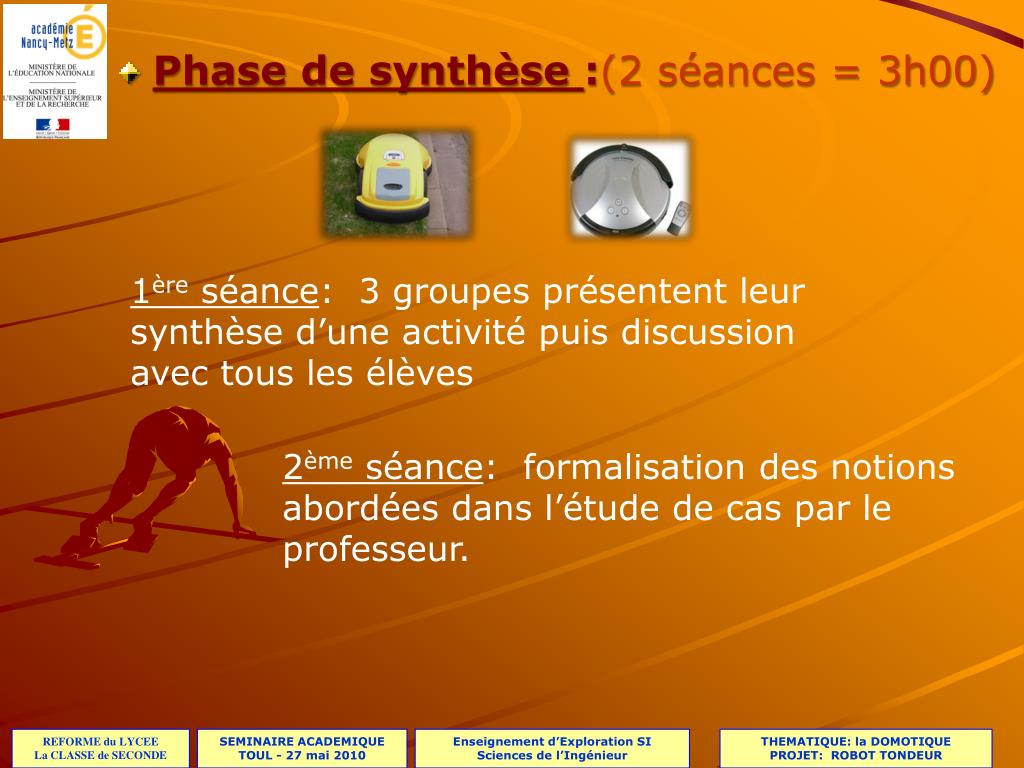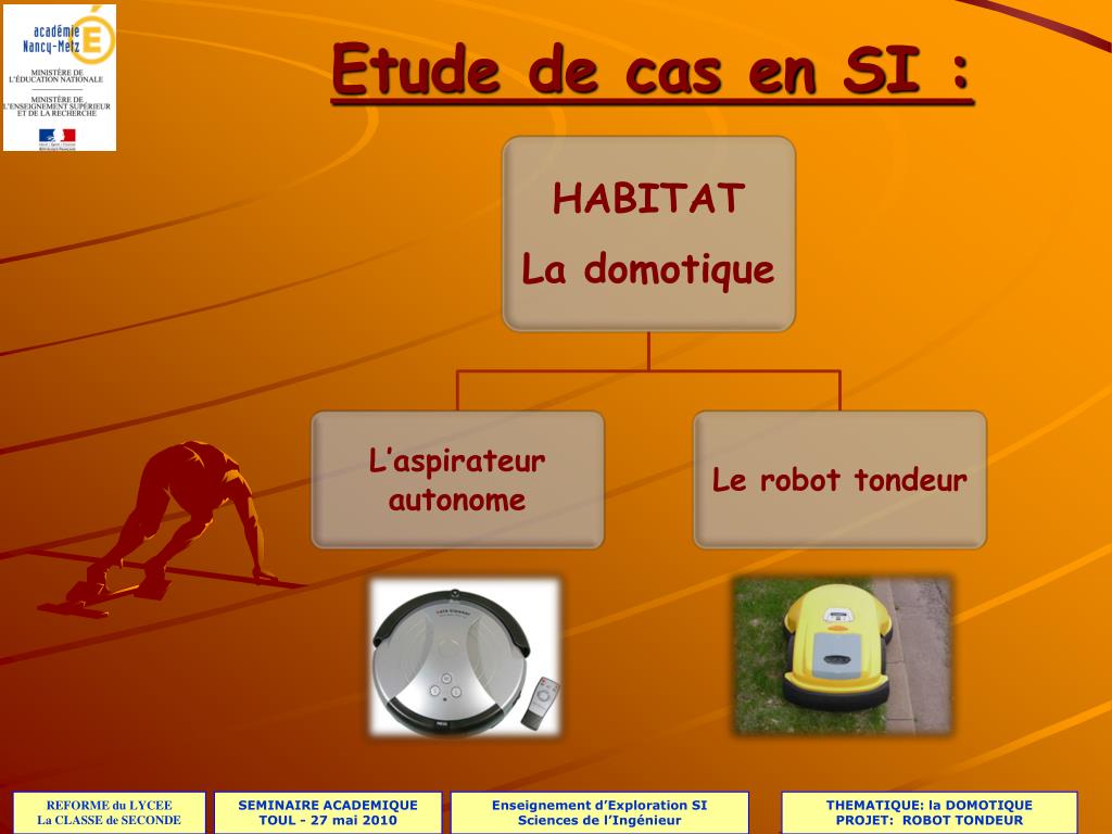 Etude de cas en SI :. Etude de cas en SI : 9h. 1h30. 2 x 1h30. 3 x 1h30. Phase de lancement. Phase d’exploration. Phase de synthèse. Phase de lancement :(1 séance = 1h30). Présentation du thème Présentation des supports: Ex: le robot tondeur