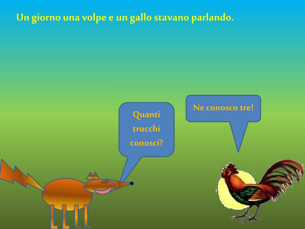 Un giorno una volpe e un gallo stavano parlando. Ne conosco tre! Quanti trucchi conosci?