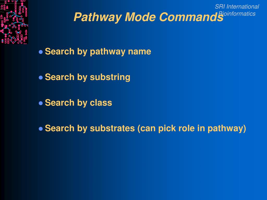 Pathway Mode Commands • Search by pathway name • Search by substring • Search by class • Search by substrates (can pick role in pathway)