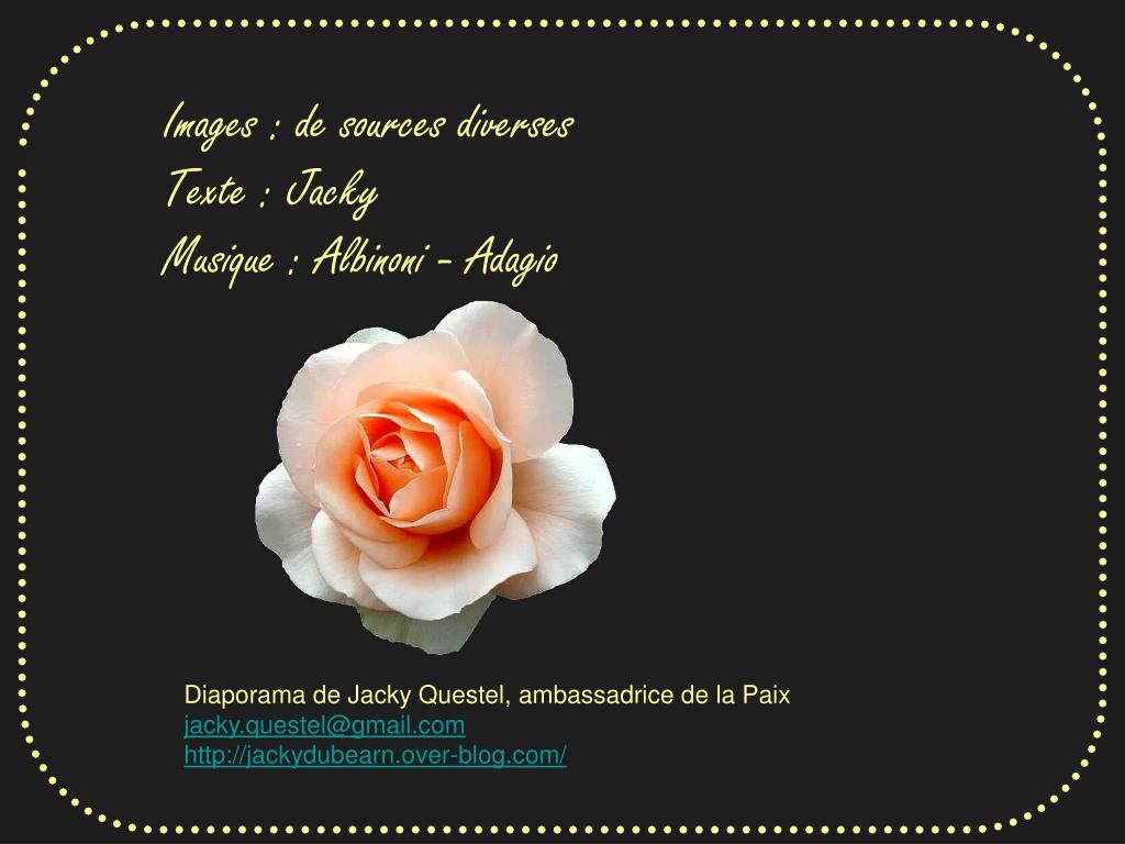 Images : de sources diverses Texte : Jacky Musique : Albinoni - Adagio Diaporama de Jacky Questel, ambassadrice de la Paix jacky.questel@gmail.com http://jackydubearn.over-blog.com/