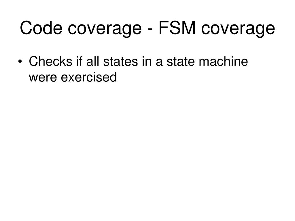 Code coverage - FSM coverage • Checks if all states in a state machine were exercised