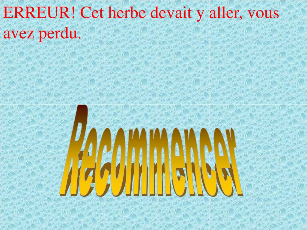 ERREUR! Cet herbe devait y aller, vous avez perdu. Recommencer