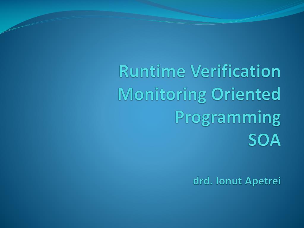 Runtime Verification Monitoring Oriented Programming SOA drd . Ionut Apetrei. Agenda. 1. Runtime Verification 2. Paradigma MOP 3. Java MOP 4. SOA Monitoring 5. Concluzii. 1. Runtime Verification. Notiunea de verificare implica trei tehnici de baza :
