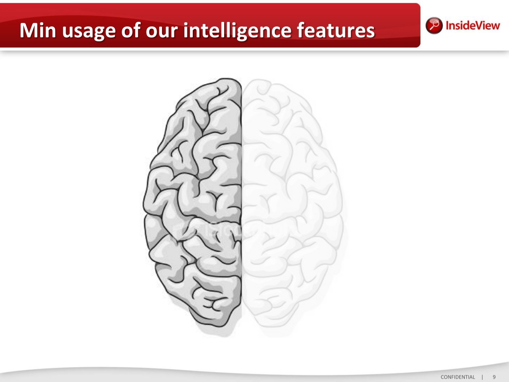 Key Insights • Minimal use of our intelligence features • Everyone prospects & qualifies • “I don’t have time” • “I was trained but forgot about that” • “What’s a smart agent?” • “I need to figure out how to start the conversation” • “Linkedin is for business, Facebook is personal” • “Where does your data come from?” • Agent alerts are less useful when sales cycle is short and reps own many accounts • We have a product champion