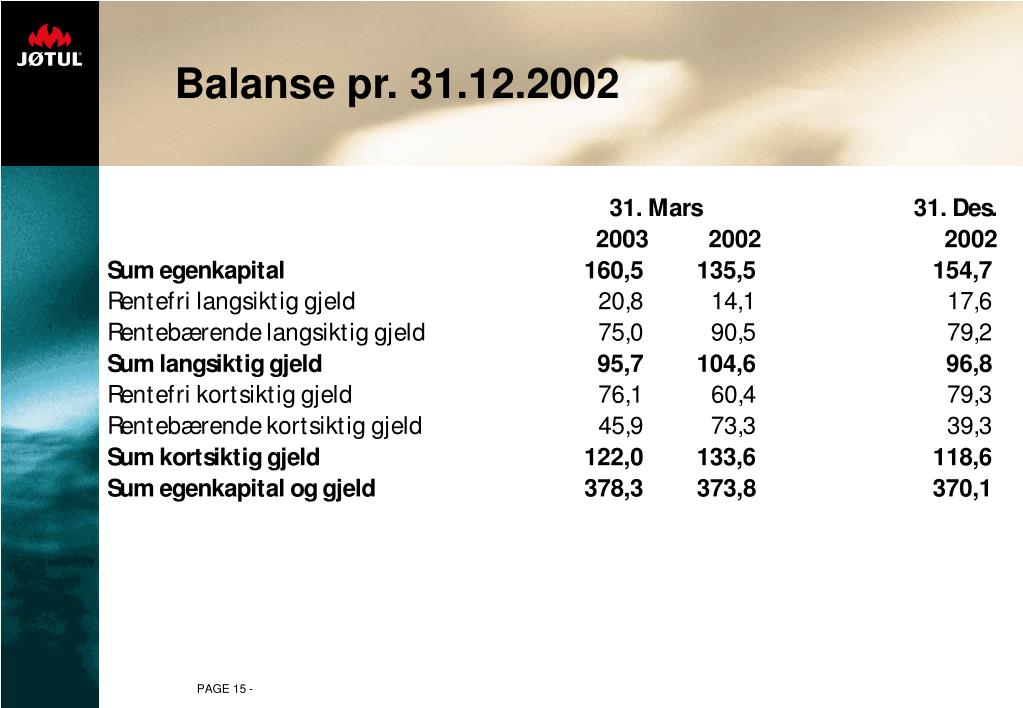 Balanse pr. 31.12.2002 PAGE 15 -