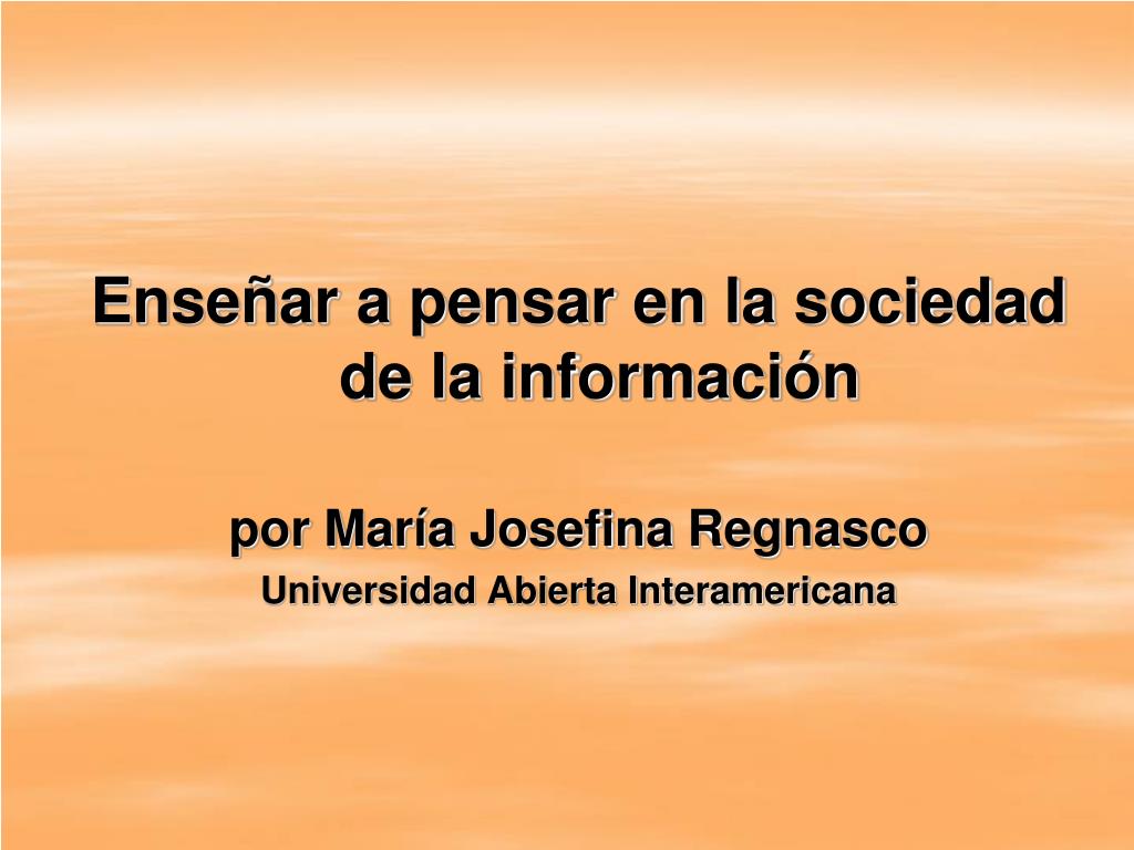 Enseñar a pensar en la sociedad de la información por María Josefina Regnasco Universidad Abierta Interamericana