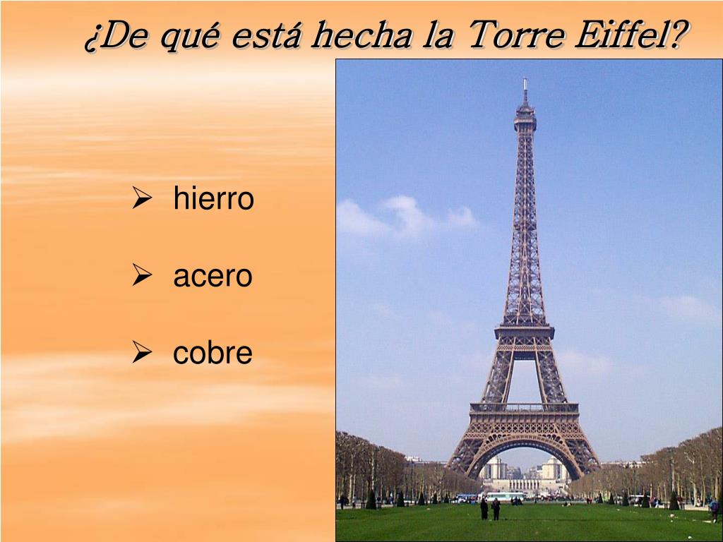 ¿De qué está hecha la Torre Eiffel? • hierro • acero • cobre