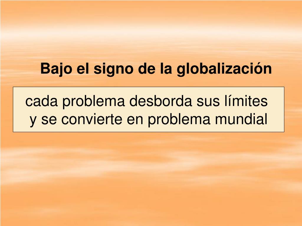 Bajo el signo de la globalización cada problema desborda sus límites y se convierte en problema mundial