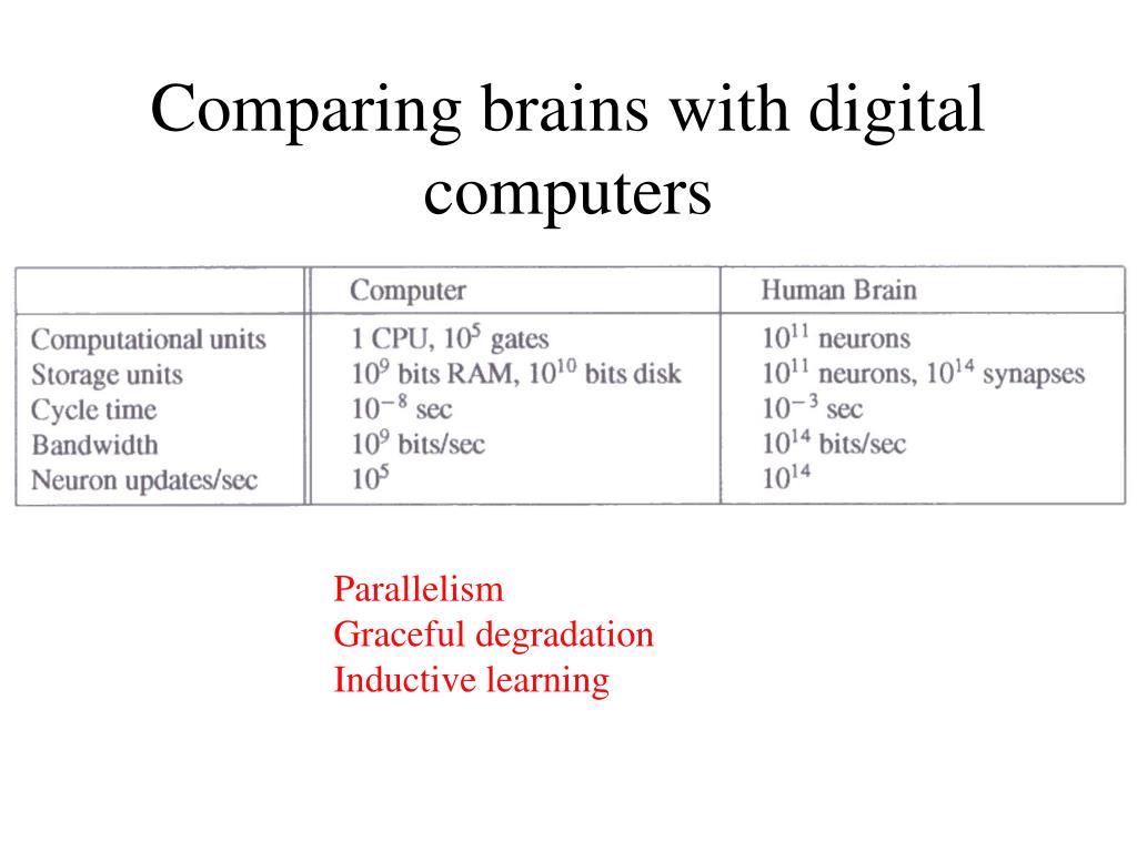 Comparing brains with digital computers Parallelism Graceful degradation Inductive learning