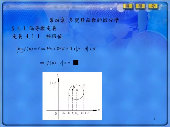 第四章 多變數函數的微分學 § 4.1 偏導數定義 定義 4.1.1 極限值 ■