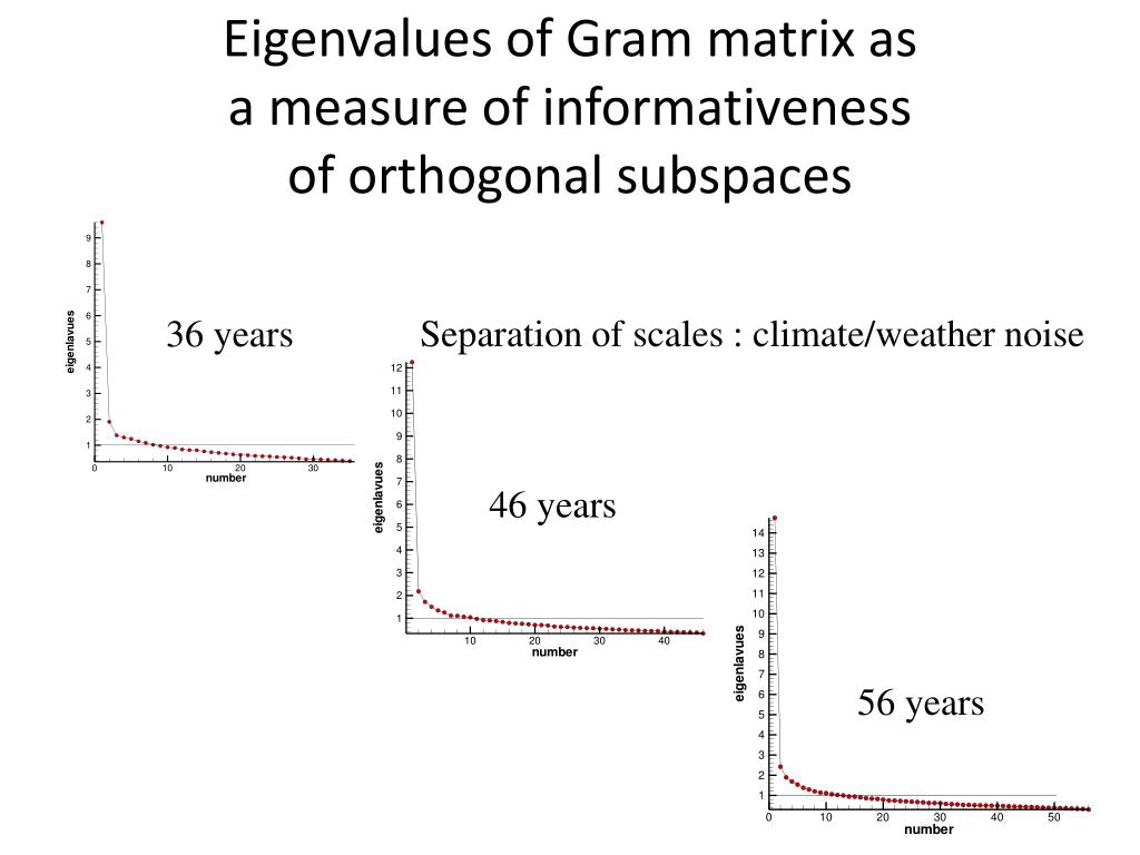 Eigenvalues of Gram matrix as a measure of informativeness of orthogonal subspaces Separation of scales : climate/weather noise 36 years 46 years 56 years