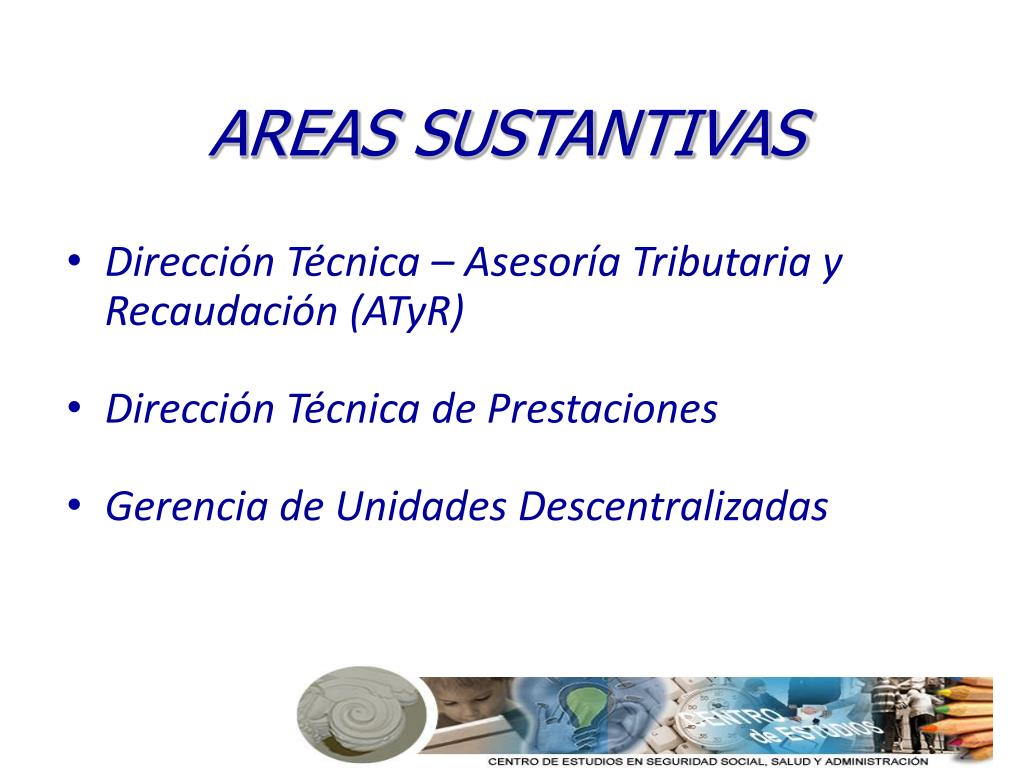 AREAS SUSTANTIVAS • Dirección Técnica – Asesoría Tributaria y Recaudación (ATyR) • Dirección Técnica de Prestaciones • Gerencia de Unidades Descentralizadas