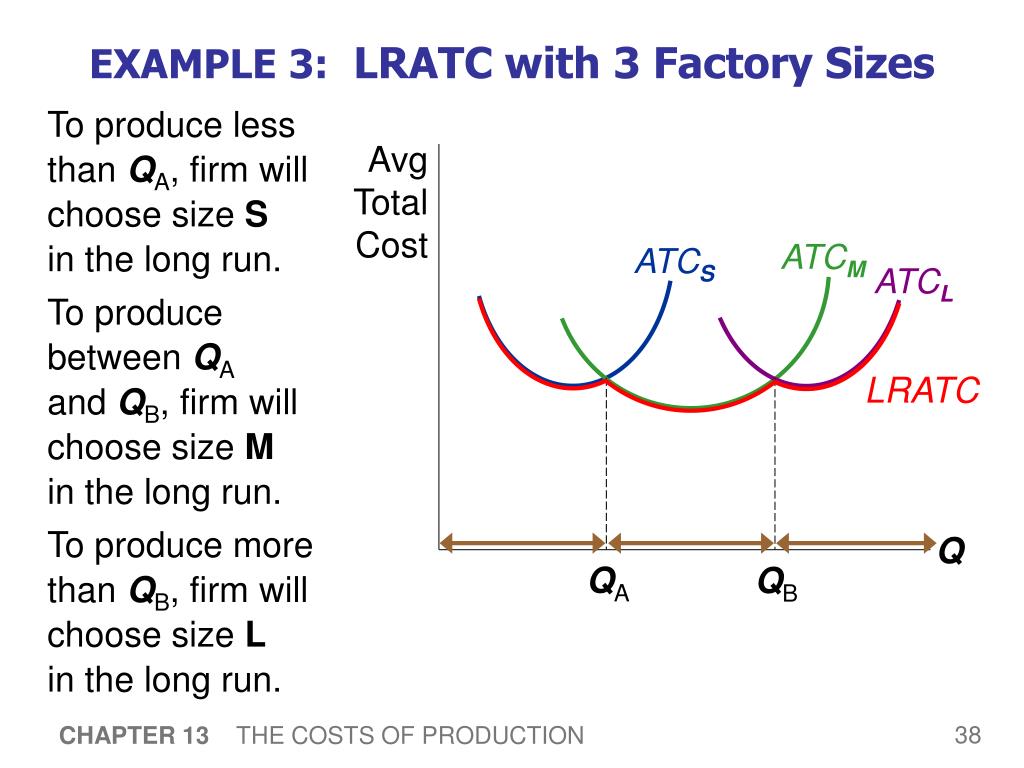 ATC LRATC Q A Typical LRATC Curve In the real world, factories come in many sizes, each with its own SRATC curve. So a typical LRATC curve looks like this: CHAPTER 13 THE COSTS OF PRODUCTION