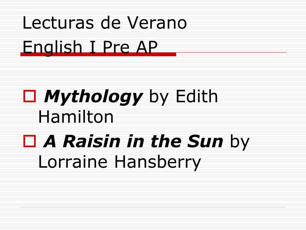 Lecturas de Verano English I Pre AP • Mythology by Edith Hamilton • A Raisin in the Sun by Lorraine Hansberry