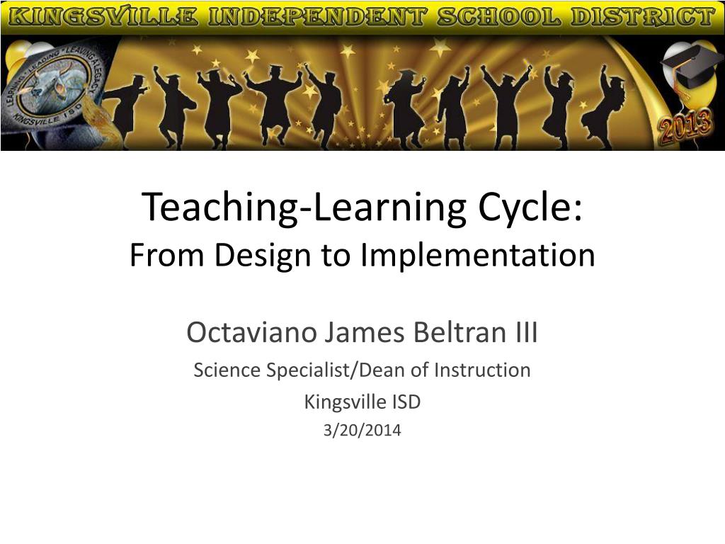 Teaching-Learning Cycle:From Design to Implementation Octaviano James Beltran III Science Specialist/Dean of Instruction Kingsville ISD 3/20/2014