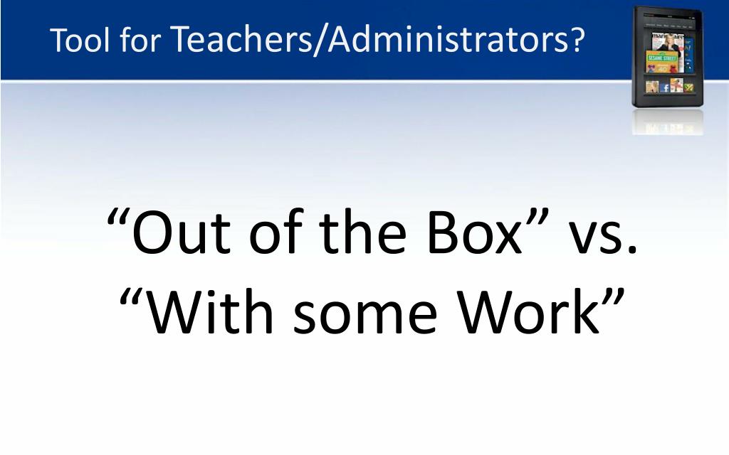 Tool for Teachers/Administrators? “Out of the Box” vs. “With some Work”