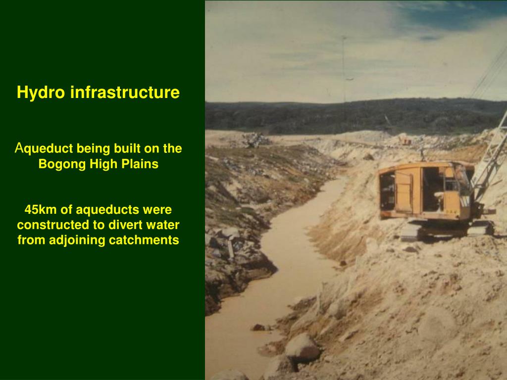 Hydro infrastructure Aqueduct being built on the Bogong High Plains45km of aqueducts were constructed to divert water from adjoining catchments