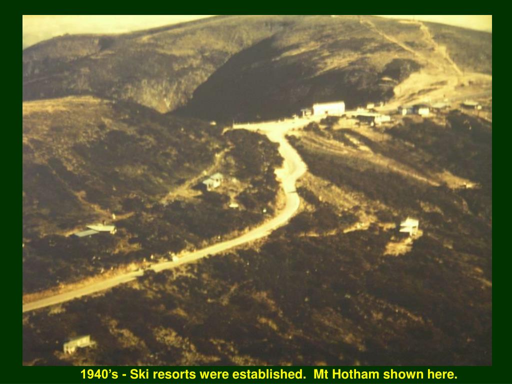 1940’s - Ski resorts were established. Mt Hotham shown here.