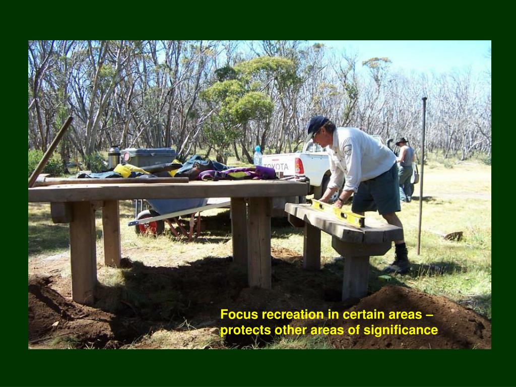 Supply other areas for intensive recreation – such as Falls Creek. These areas still have an impact on the park such as weeds, seed dispersal and runoff.