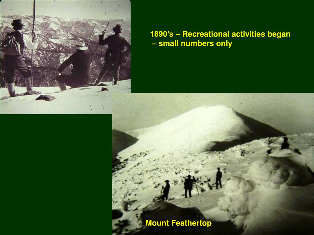 1890’s – Recreational activities began – small numbers only Mount Feathertop