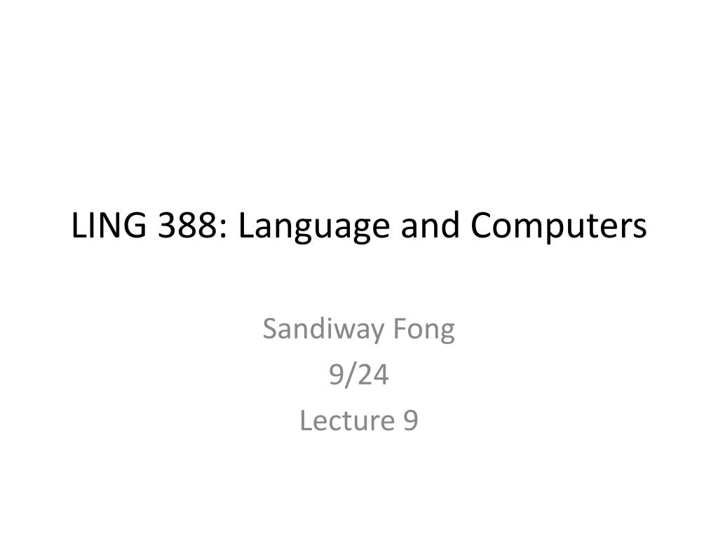 LING 388: Language and Computers Sandiway Fong 9/24 Lecture 9