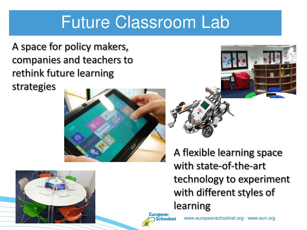 A flexible learning space with state-of-the-art technology to experiment with different styles of learning Future Classroom Lab • A space for policy makers, companies and teachers to rethink future learning strategies