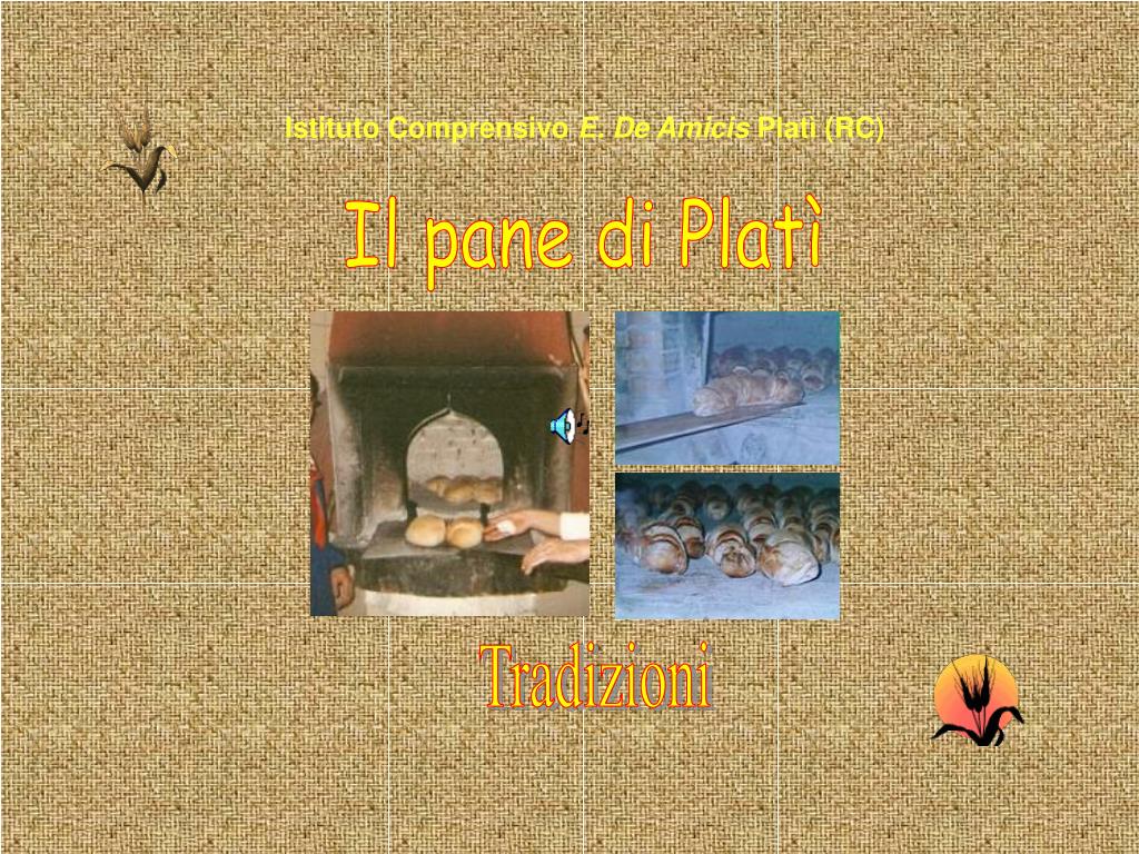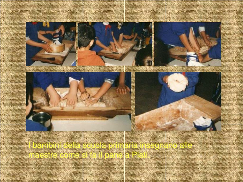 Istituto Comprensivo E. De Amicis Platì (RC). Il pane di Platì. Tradizioni. U pani i Platì. A Platì ndavi tanti cosi boni ma sopratuttu u pani. A levitazioni e lu pastamentu naturali rendano stu pani u mejju da regioni e i tutti i parti lu venanu a comprari.