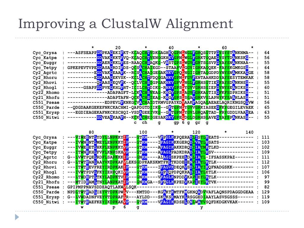Improving a Multiple Sequence Alignment • When aligning groups of related sequences it is important to note that residues in those sequences are either: • Conserved (not mutated) • Unconstrained (when mutated can be almost any amino acid) • Constrained (when mutated must be one of a few amino acids) • Motifs are distinct units that consists of theconserved and constrained regions; • Motifs generally tell us the residues that are essential to the structure/function of the sequence • Typically, multiple sequence alignments contain motifs as well as unconstrained regions. • Aligning motifs in a multiple sequence alignment will improve the quality of the alignment These materials were developed with funding from the US National Institutes of Health grant #2T36 GM008789 to the Pittsburgh Supercomputing Center